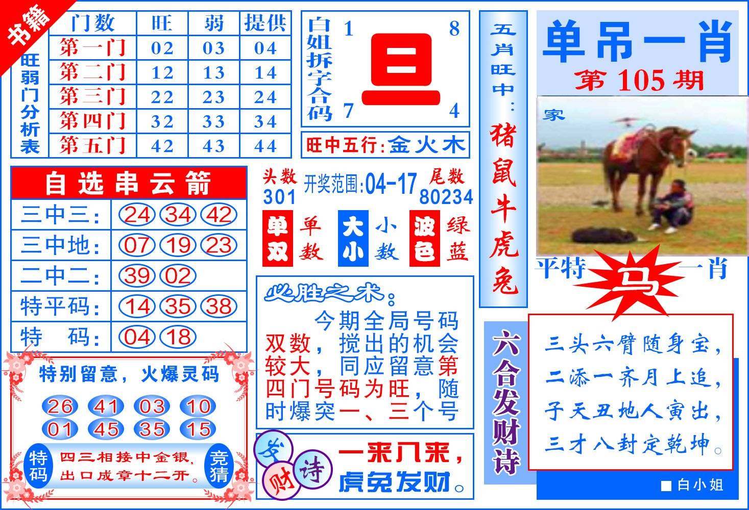 | 105期 家 【牛羊猪】 野 【猴鼠虎】开 ??? | |